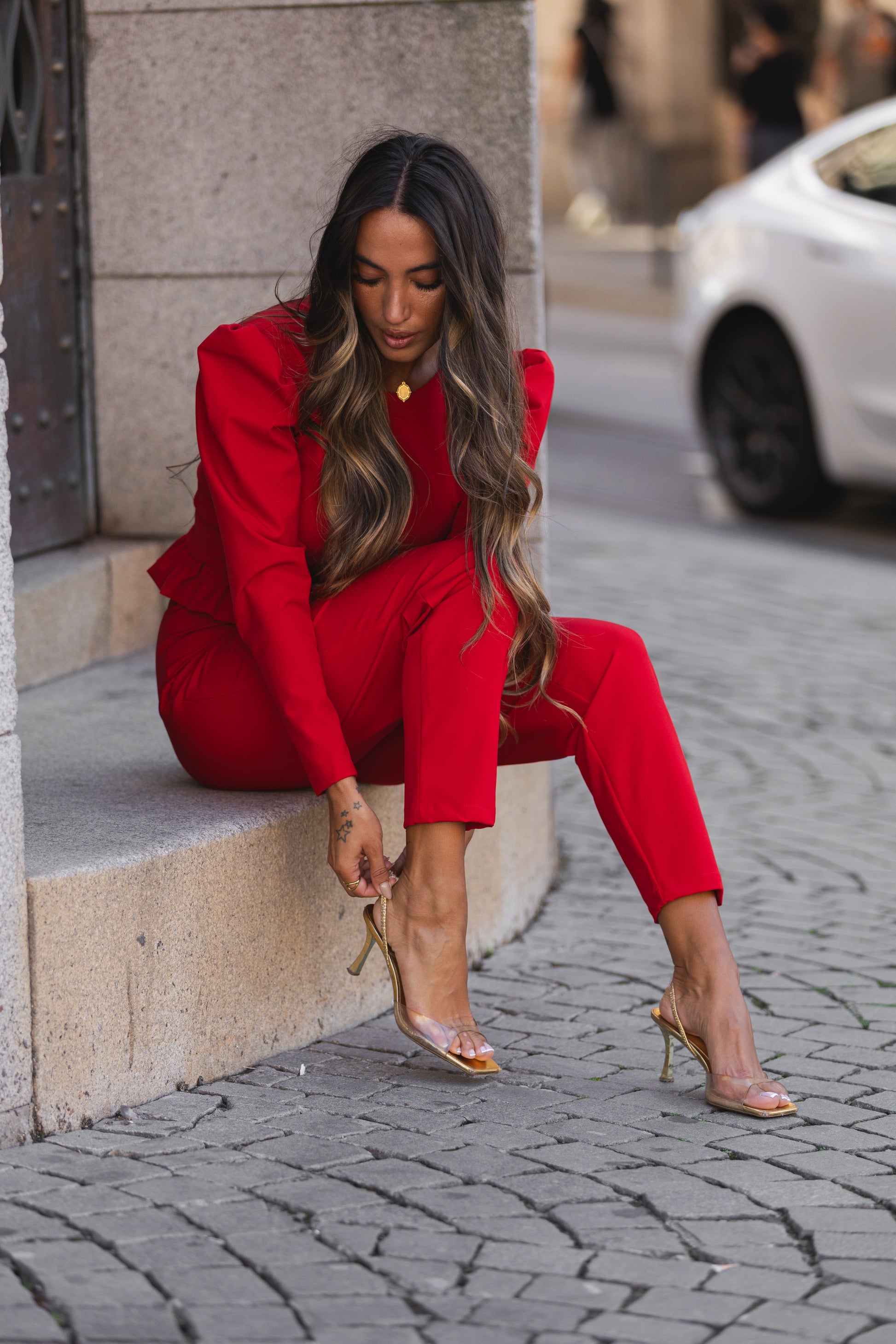 Tejido: crepe con elastano, textura intermedia, tacto suave